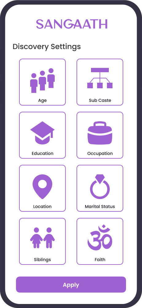 Users can filter potential partners based on the Subcaste feature, which allows them to connect with individuals who share similar cultural and familial backgrounds. This feature leverages the traditional Samaaj classification, helping users find matches that align with their community values and practices. By incorporating this filter one can search on basis of demographics, gaams, and samaj